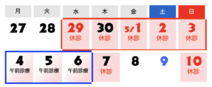 (ホームページの診療カレンダーもしくは公式LINEからカレンダーをご覧ください)